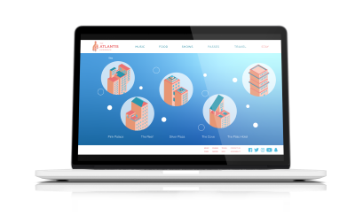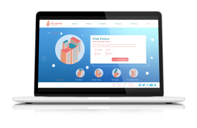 Custom, stylized illustrations are used throughout the site to bring Atlantis to life through bright colors and dynamic perspective.