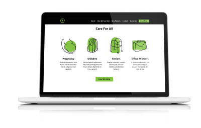 With only a logo, the Childs Chiropractic brand needed to expand to be used effectively across the new site and all mediums. Custom icons were created to communicate the different patients served and services provided by Childs. The minimal icons help to communicate between uncomfortable problems and satisfying solutions.